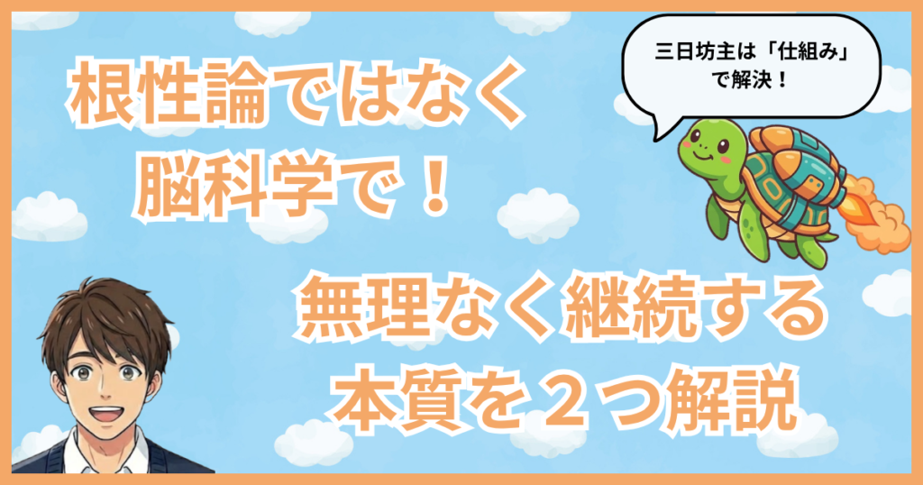 こんにちは、大学生ブロガーのコッサクです。 読者の悩み 「また途中で挫折をしてしまった…」 「スマホばかりいじっちゃう…」 「体が重くて全然動かない…」 「続かない自分はダメな人間なのかな?」 先生、何をやっても三日坊主で続かなくて……。気合...